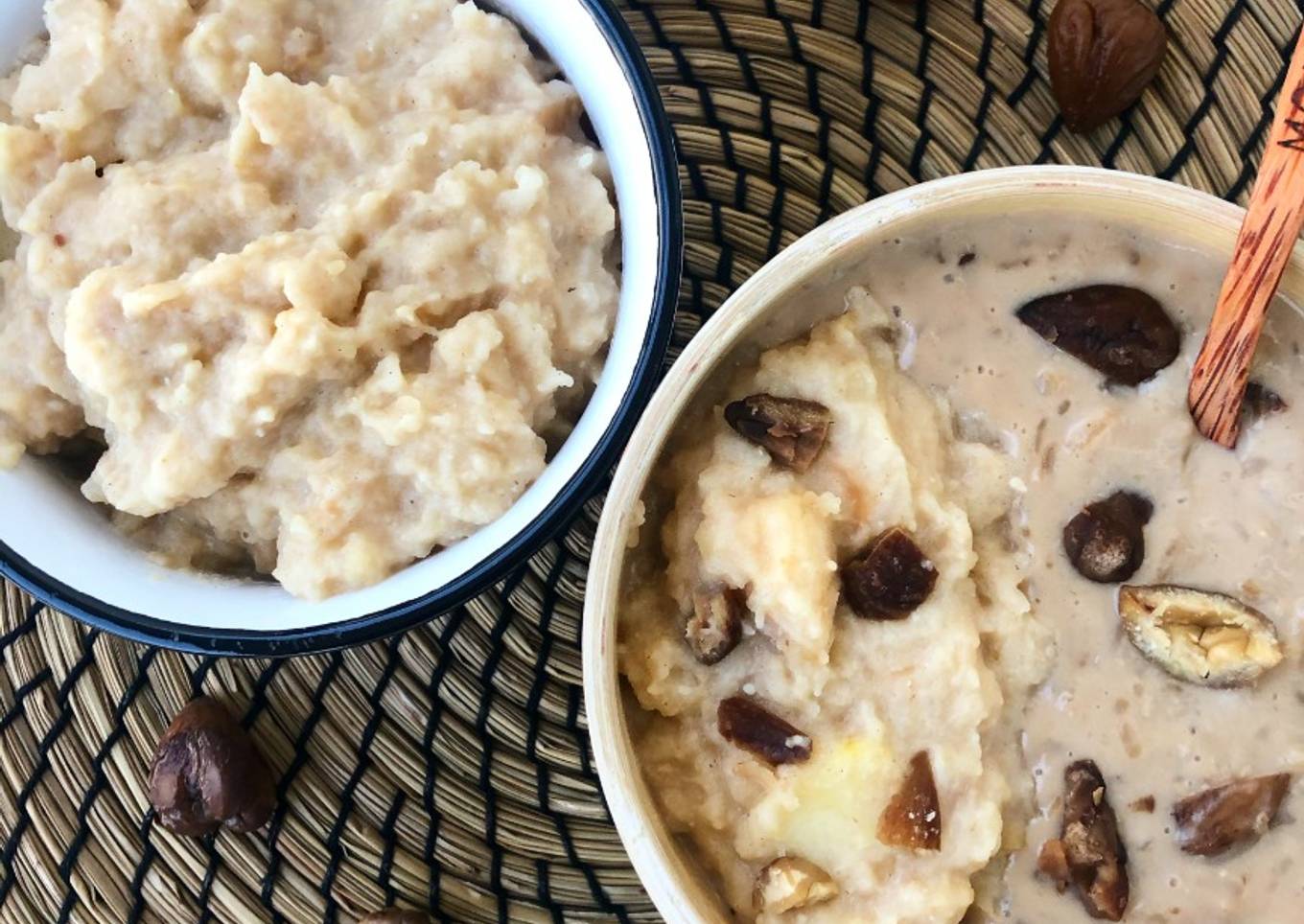 Riz au lait à la châtaigne et aux épices chai, compotée pomme-amande 🍏🥣🌱