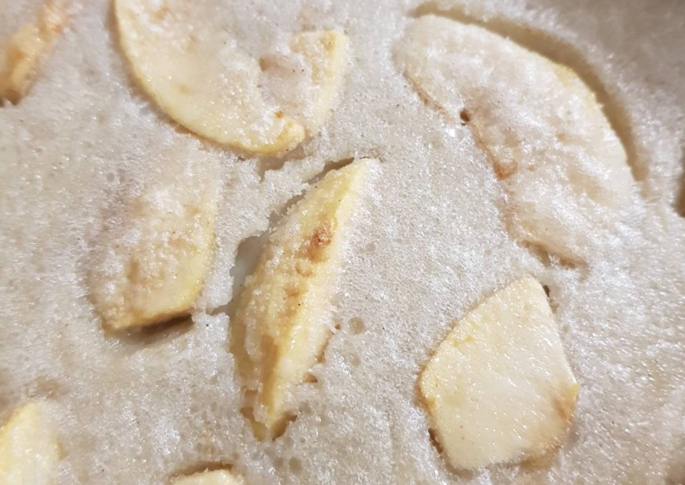 - Épluchez et coupez les pommes en morceaux puis les mettre dans le plat ou les verrines