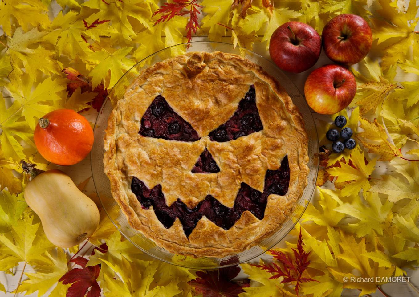 Aujourd’hui je vous propose une recette spéciale Halloween ! L’apple blueberry pie ! Une tarte un peu effrayante mais appétissante 🎃